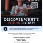 - 7Preschool Storytime10:00 AM - 10:30 AMJoin us in the children’s library for stories and a craft. Ages 2-5 , ...Illinois State Treasurer I-CASH Event1:00 PM - 4:00 PMThe State Treasurer is holding more than 5 billion dollars in unclaimed funds for Illinoisans. The State holds these lost funds until they are claimed by either the original owner or their heirs. Property is returned at no cost with the proper identification. , ...Lego Night6:00 PM - 7:00 PMLEGO Club at Latzer Library is a free opportunity for kids to gather and have fun building with LEGO bricks. LEGO are provided, just bring creativity! , ...